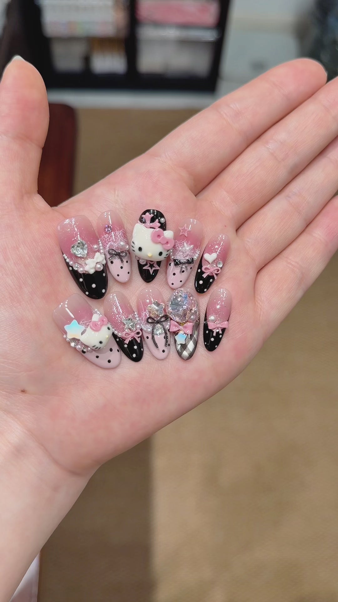 3D Hello Kitty design with bows, pearls, and rhinestones β detailed to perfection π